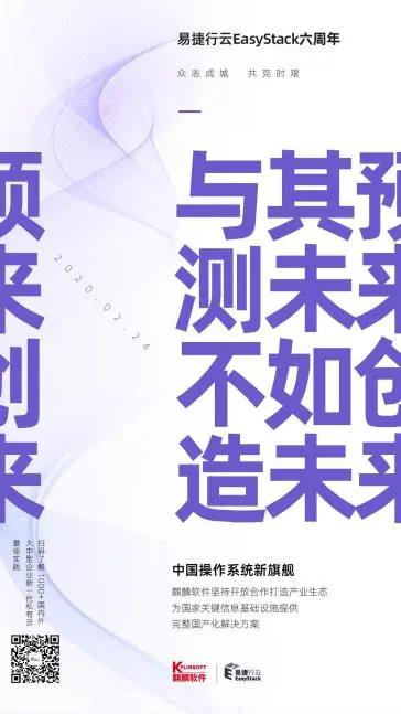 2月24日,在易捷行云EasyStack成立六周年之际,麒麟软件特别祝贺EasyStack过去取得的瞩目成绩,并对未来双方的创新共融、合作发展充满信心!