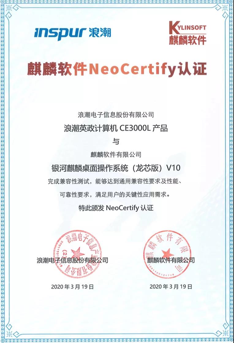 近日,麒麟软件有限公司与浪潮电子信息股份有限公司完成兼容性测试,此次认证的产品有浪潮英政计算机CE3000L产品与银河麒麟桌面操作系统。测试结果表明,双方产品兼容性良好,产品功能正常。