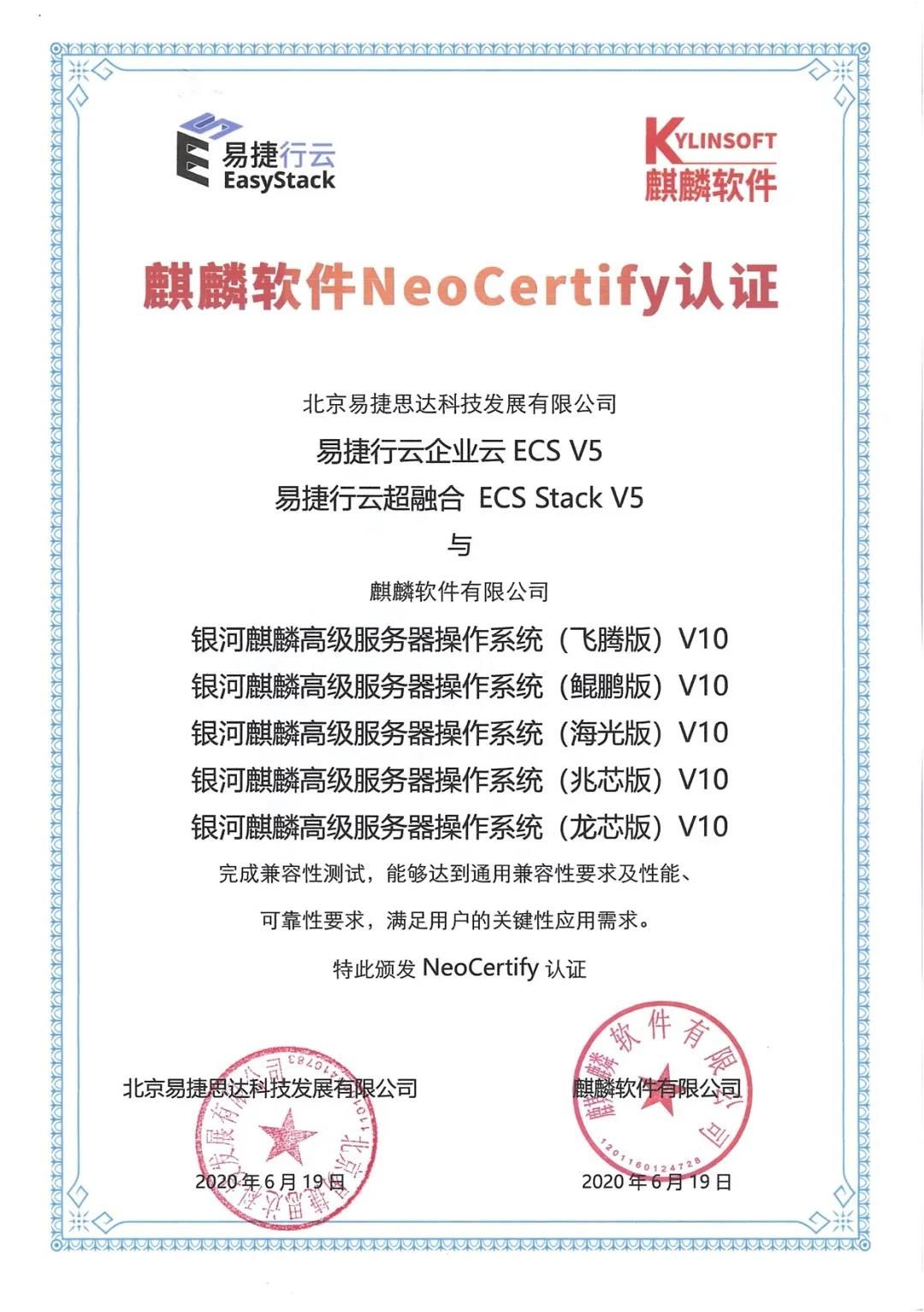 近日,麒麟软件与易捷行云EasyStack联合宣布,银河麒麟高级服务器操作系统V10(飞腾版、鲲鹏版、海光版、兆芯版、龙芯版)与易捷行云EasyStack新一代私有云产品EasyStack Cloud Service V5 (简称ECS V5 )、EasyStack Kubernetes Service V5 (简称EKS V5 )完成兼容性互认证。测试结果显示,双方产品兼容性良好、性能卓越,能够达到通用兼容性要求及性能、可靠性要求,满足用户关键性应用需要。
