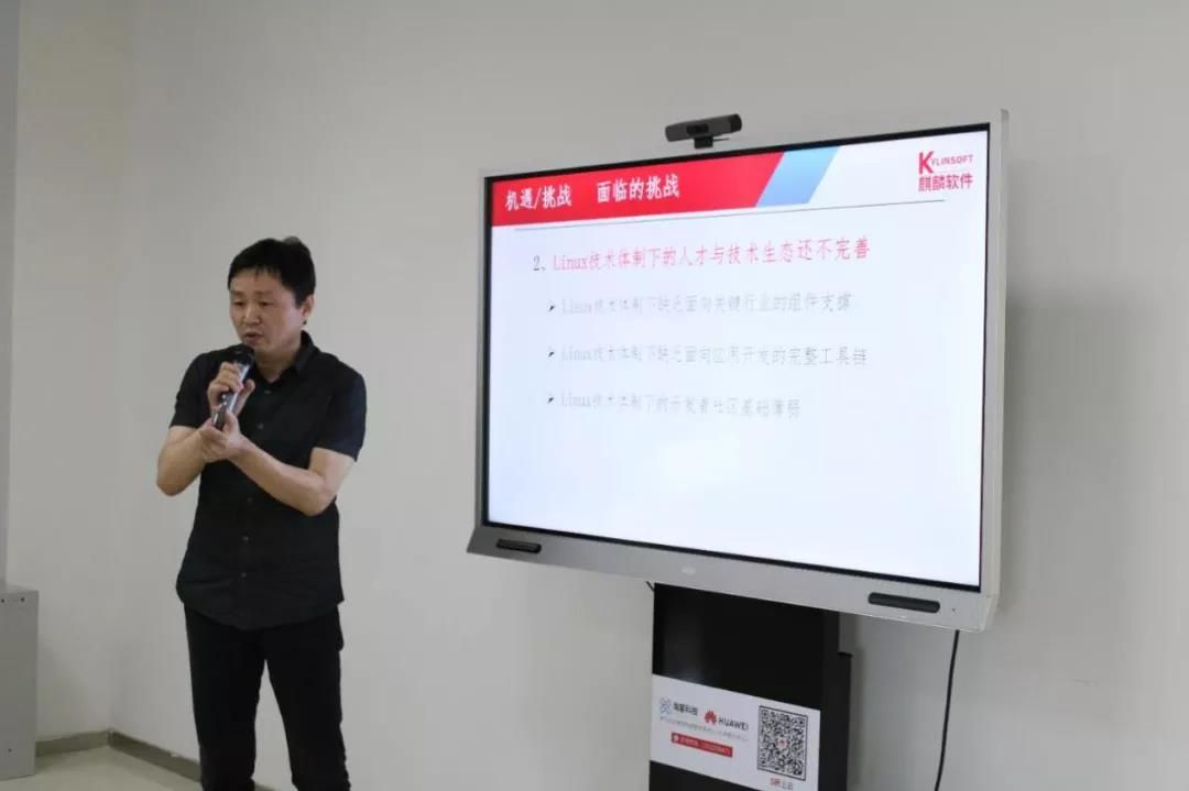 在研讨会上,麒麟软件有限公司产品适配部总经理李斌介绍了麒麟软件生态建设及适配认证情况。在交流环节,参会代表根据实际工作中遇到的问题进行交流和讨论,并就信创产品适配表达了企业之间互通有无、协同发展的愿望。