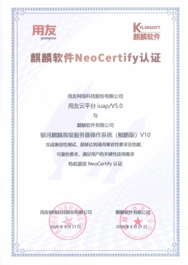 银河麒麟操作系统V10与用友iuap完成兼容互认