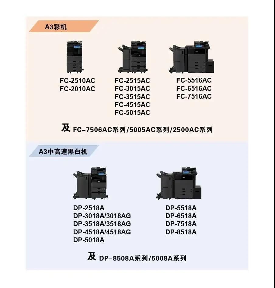通过认证的东芝复合机机型包括