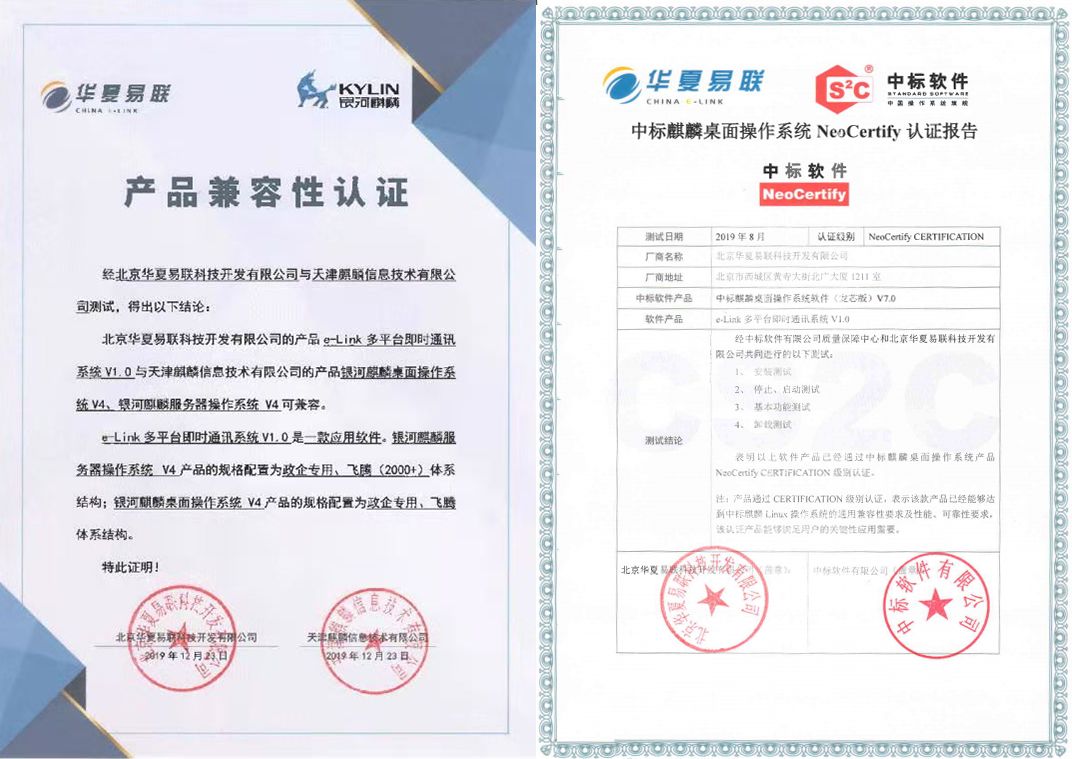 麒麟软件与华夏易联e-Link即时通讯平台完成兼容性相互认证