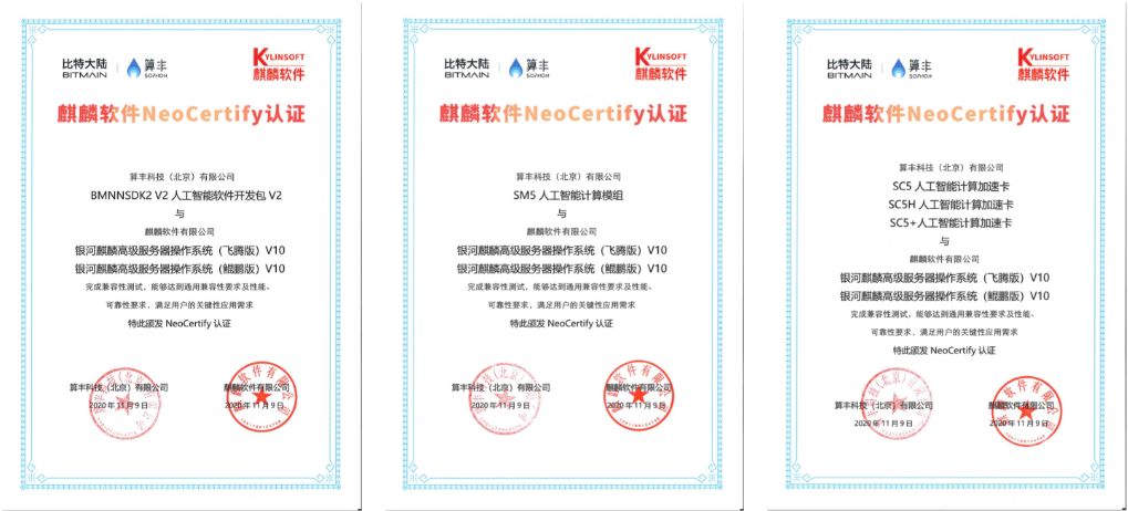 测试结果表明,双方产品在可靠性、用户关键性应用需求及性能要求等方面均良好适配,算丰科技获颁麒麟NeoCertify认证。