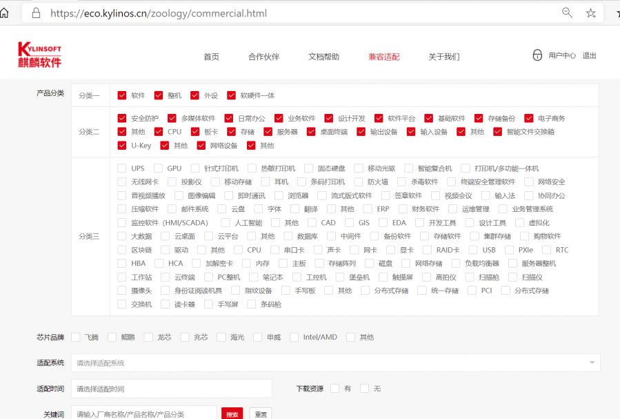 对个人用户而言,可以通过适配中心平台的兼容适配列表,筛选查找到不同操作系统平台的适配产品,并下载部分适配产品的软件包和外设驱动(持续增加中)。