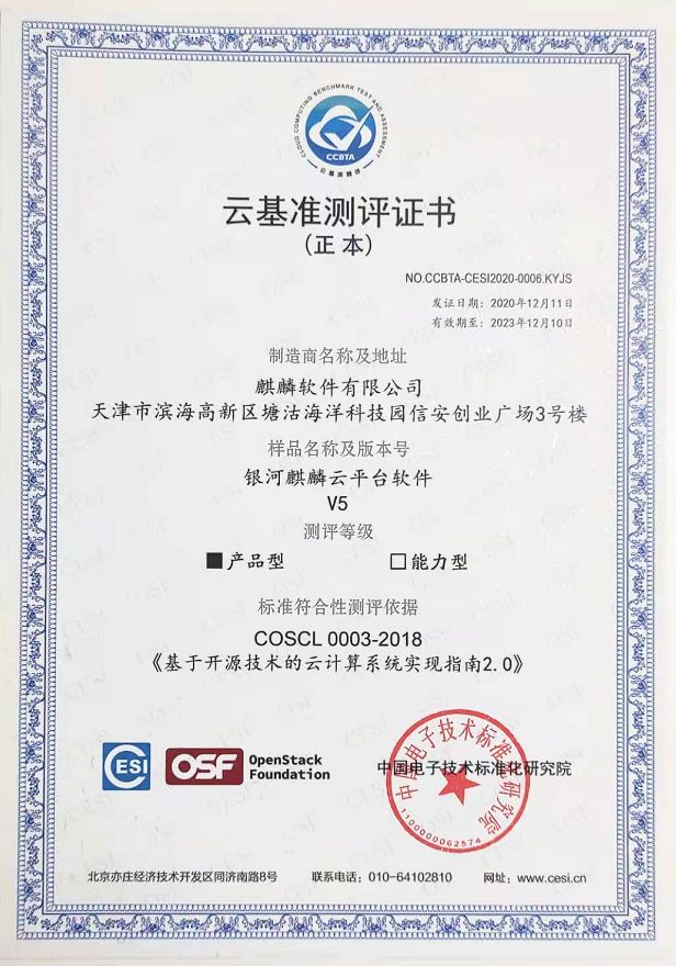 继不久前基于银河麒麟云的“鹏城生态”开发者云取得云计算性能全球 SPEC Cloud IaaS 2018测试NO.1的好成绩后(https://www.spec.org/cloud_iaas2018/results/cloudiaas2018.html),银河麒麟云于近日又顺利通过了中国电子技术标准化研究院“基于OpenStack等开源技术的云计算系统互操作性和可移植性能力标准符合性测评”,业界简称“OpenStack互操作性测试”。