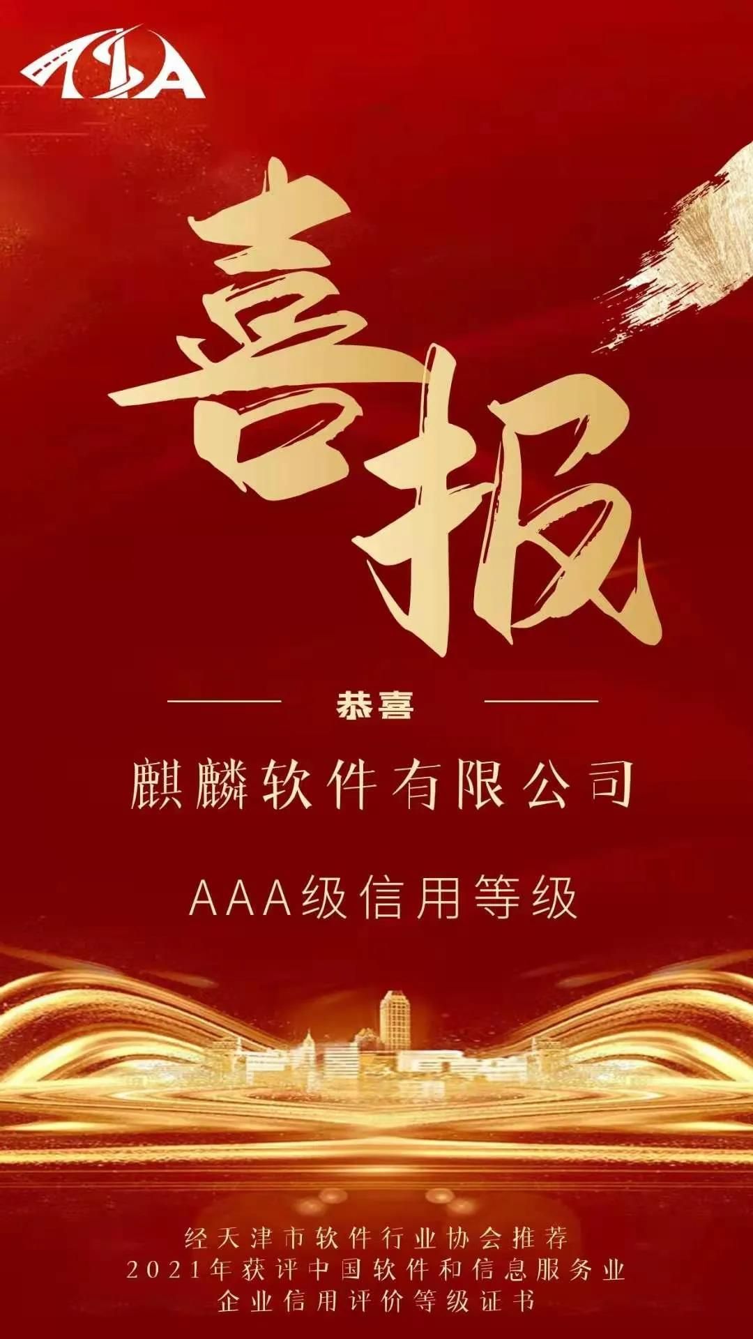 喜报!麒麟软件荣获企业“AAA级信用等级”认证