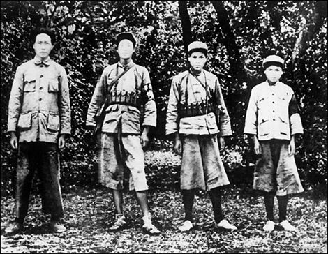 △毛泽东与红军战士合影