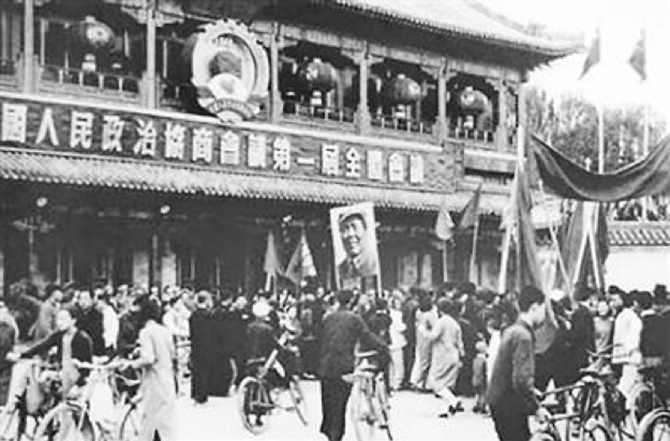 毛泽东:诸位代表先生们,全国人民所渴望的政治协商会议现在开幕了!