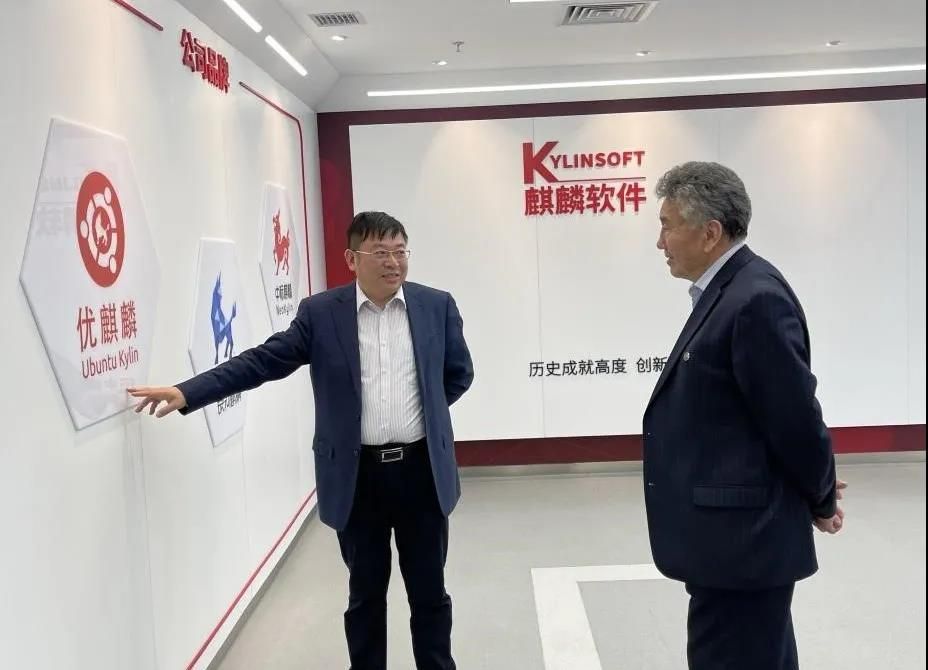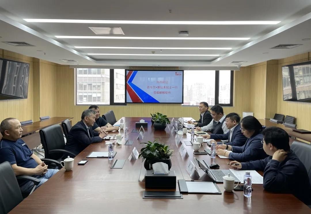 期间,吾守尔·斯拉木院士一行还参观了麒麟软件公司展厅、适配中心。吾守尔·斯拉木院士团队巴特尔教授、巴依塔老师陪同调研,麒麟软件副总裁、规划科技部总经理齐璇,战略合作部战略合作总监马发俊,公共事业部总监张楠等参与了会谈活动。