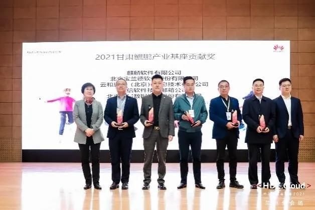 2021HDC甘肃分会场,麒麟软件荣获“2021甘肃鲲鹏产业基座贡献奖”。