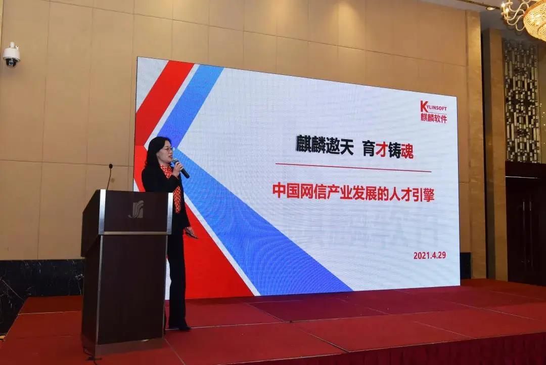 麒麟软件高级副总裁、人力资源部总经理、麒麟软件学院院长张娜代表麒麟软件与3所知名高校签署校企合作协议,并做《麒麟遨天 育才铸魂》主题演讲。麒麟软件天津事业部总经理全龙、麒麟软件学院人才生态建设总监杭斯乔、副总监杨阳参会,并与各高校负责人及企业代表沟通交流。