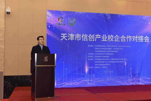 4月29日,天津市信创产业校企合作对接会隆重举行。市教委、市科技局、市工信局、市知识产权局、滨海高新区管委会等单位领导出席。南开大学、天津大学、天津工业大学、天津师范大学、天津理工大学、天津科技大学、中国民航大学、天津城建大学、天津职业技术师范大学、河北工业大学等高校领导和学科负责人参会。麒麟软件、飞腾、云账户、360、神舟通用、华为鲲鹏中心、人大金仓、联想弘扬、中国软件等120余家企业应邀到场,有关行业协会、联盟、人才服务机构等20余位代表参会,会议规模超200人。