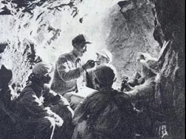 △志愿军战士们在用自己的双手筑成的“地下长城”里总结战斗经验。