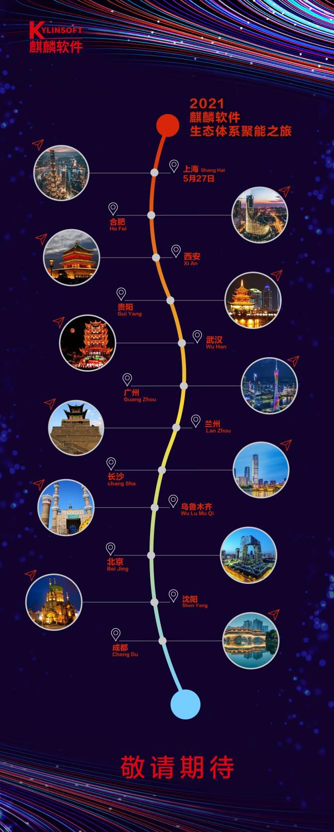 5月27日,麒麟软件2021生态体系聚能之旅将正式拉开帷幕。当天,活动首站——以“麒麟遨天 携手犇征程”为主题的麒麟软件海浙区域生态大会将在上海举办。自5月27日起,麒麟软件将陆续在上海、合肥、西安、贵阳、武汉、广州、兰州、长沙、乌鲁木齐、北京、沈阳、成都等城市举办生态大会。