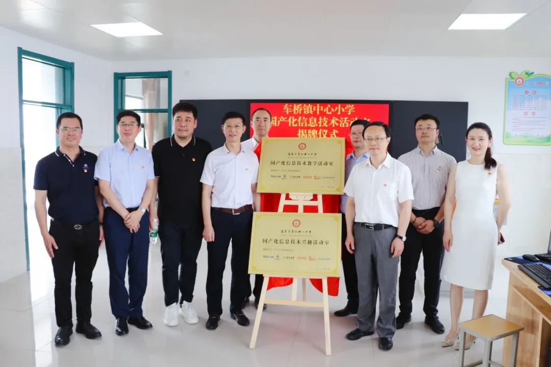 为深入学习习近平总书记在教育动员大会上的重要讲话,深入开展“我为群众办实事”的实践活动,同步完善教育行业的信息基础设施条件,不断巩固智能化教学场景的成功应用,6月29日,由江苏省委牵头,开展了以江苏省淮安市车桥镇中心小学国产化信息技术活动室揭牌仪式。江苏省淮安市淮安区委副书记、区长颜复,麒麟软件有限公司华东事业部总经理石园园以及车桥镇中心小学校长韩建伟等多方代表共同出席了本次活动。