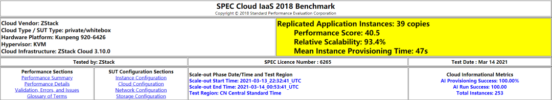 近日,国际权威的标准性能评测机构SPEC更新了SPEC Cloud IaaS 2018测试结果,作为目前唯一获得华为鲲鹏Validated认证的云厂商,云轴科技(ZStack)提交的基于ZStack Cloud云平台 + 鲲鹏服务器 + 银河麒麟服务器操作系统V10的测试结果刷新了两项历史记录:在相同硬件规模情况下,性能提升至40.5为全球最高分,可扩展性提升至93.4%为全球最高!