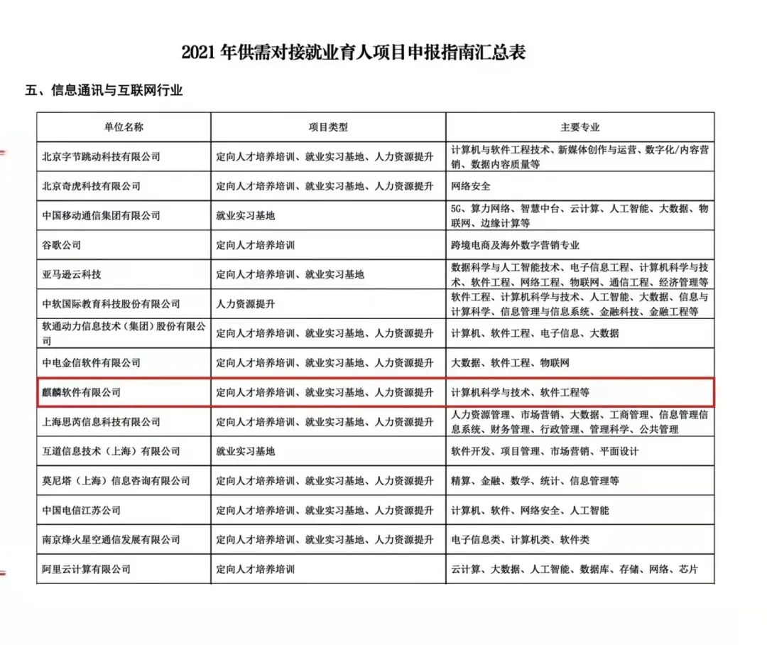 首批项目征集!麒麟软件入选2021年教育部供需对接就业育人项目申报指南