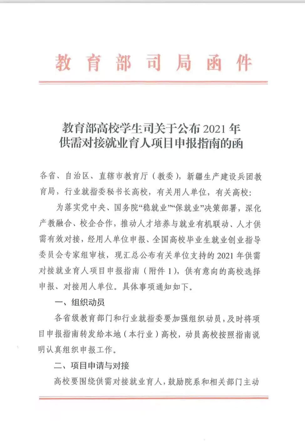 为深入贯彻落实党中央、国务院“稳就业”“保就业”决策部署,深化产教融合、校企合作,助力操作系统和网信产业人才生态建设,麒麟软件积极响应教育部高校学生司《关于征集2021年供需对接就业育人项目的函》的号召,入选首批教育部供需对接就业育人项目指南。