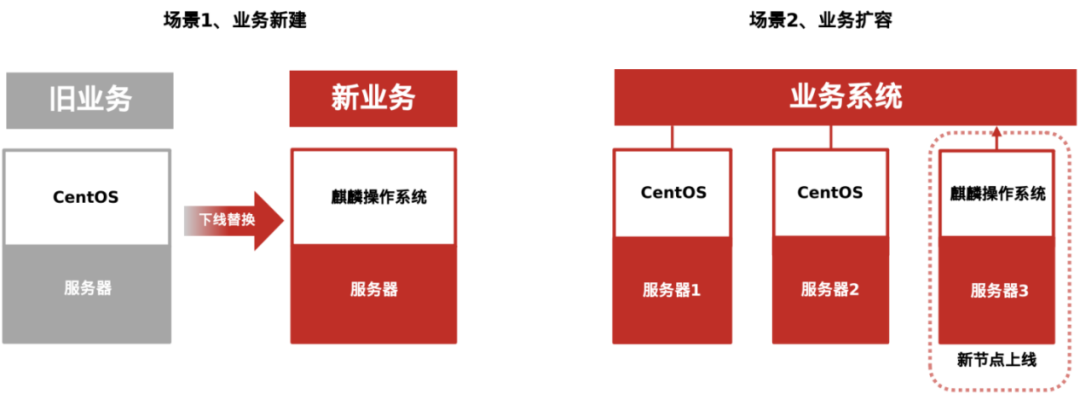 为应对CentOS迁移替换过程中系列挑战,基于不同业务系统应用场景,麒麟软件推出三种解决方案,致力于协助用户平稳完成服务器操作系统迁移。