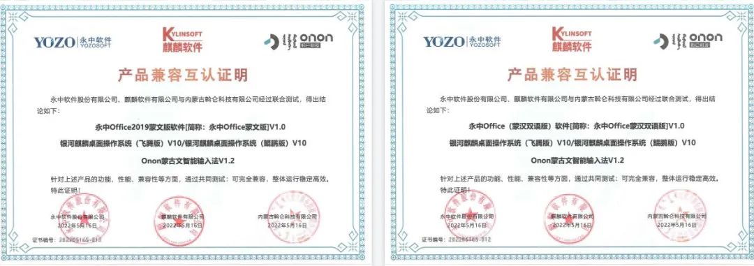 近日,麒麟软件、永中软件与内蒙古斡仑科技深度合作,共同完成产品兼容互认证。本次兼容性互认证经麒麟软件、永中软件与内蒙古斡仑科技三方联合测试得出:由永中软件与内蒙古斡仑科技联合研发的产品:永中Office(蒙汉双语版)软件[简称:永中Office蒙汉双语版]V1.0、永中Office2019蒙文版软件[简称:永中Office蒙文版]V1.0,由斡仑科技独立研发的Onon蒙古文智能输入法V1.2与银河麒麟桌面操作系统V10相互兼容,整体系统稳定,产品体验良好,攻克了蒙文Office办公软件国产化的难题。