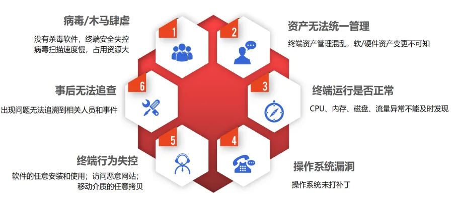 随着信息网络建设的迅速发展,终端计算机安全防护日益重要,如何高效推进安全建设,夯筑底层安全体系,是各行业面临的重点问题。终端的信息安全一直是信息系统安全的薄弱环节,针对内部网络的木马、病毒、恶意软件、各种 0day 漏洞、APT 攻击层出不穷,系统与应用软件的安全漏洞也给了黑客可乘之机。