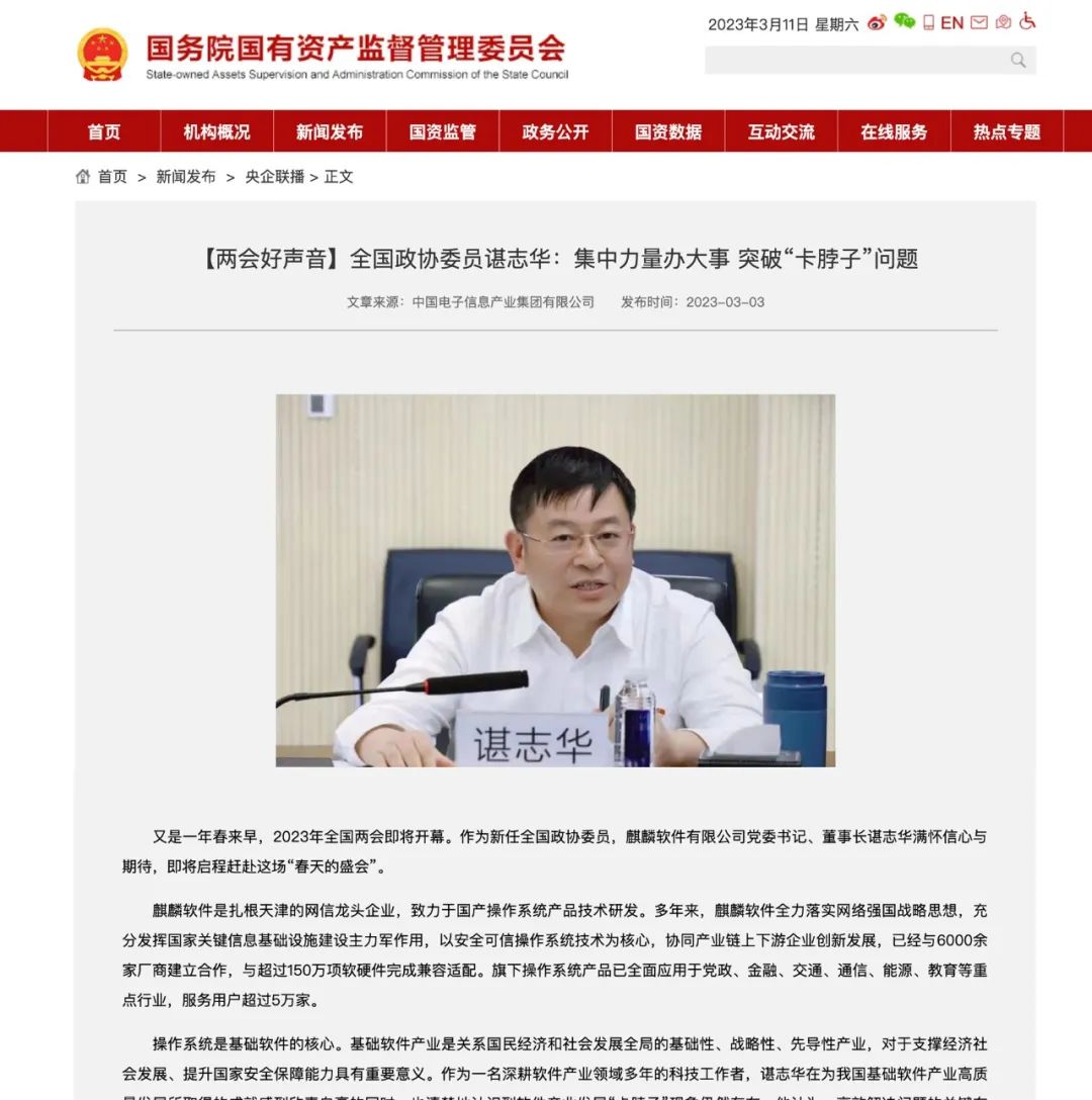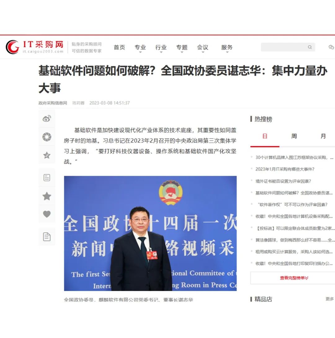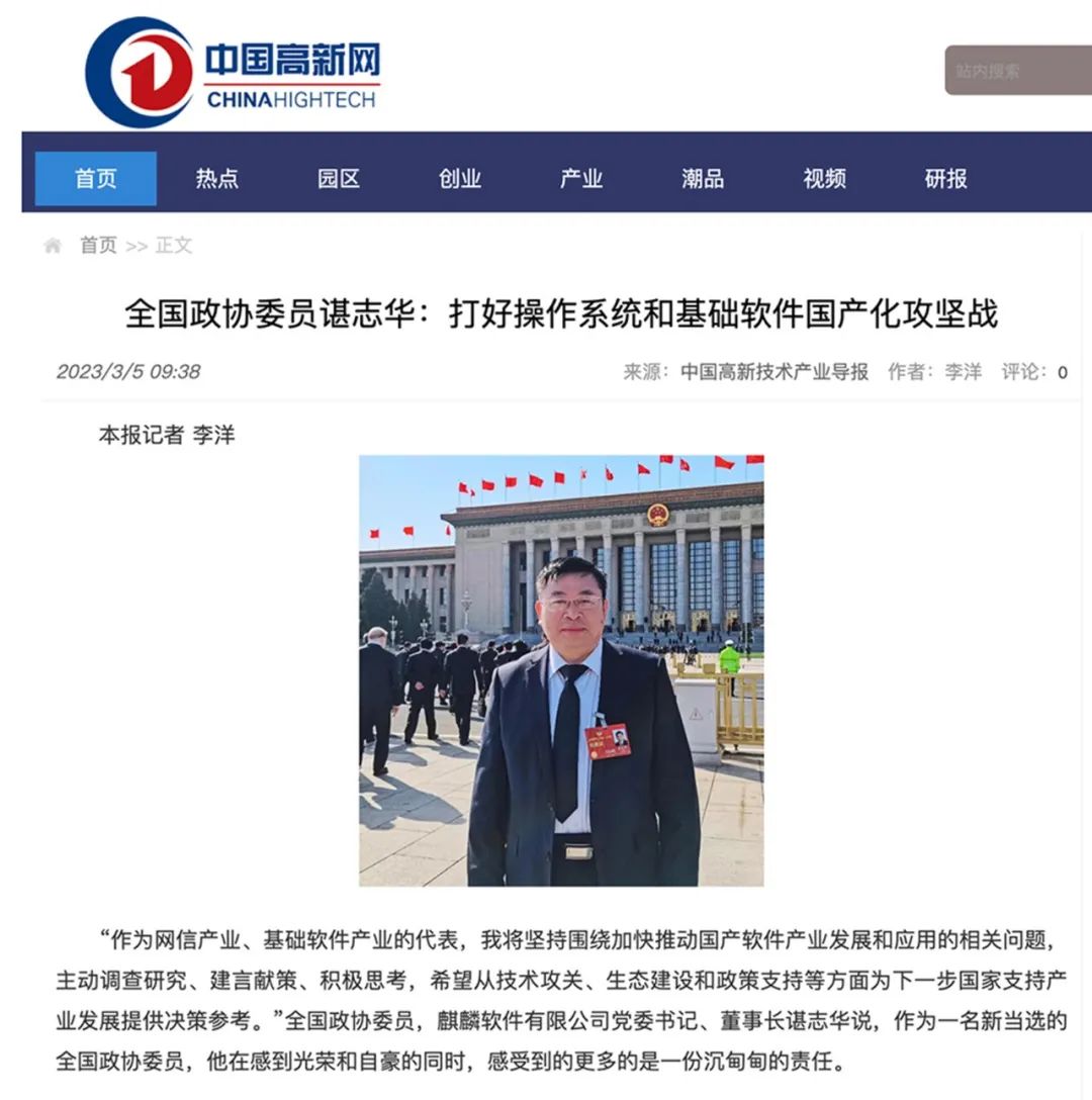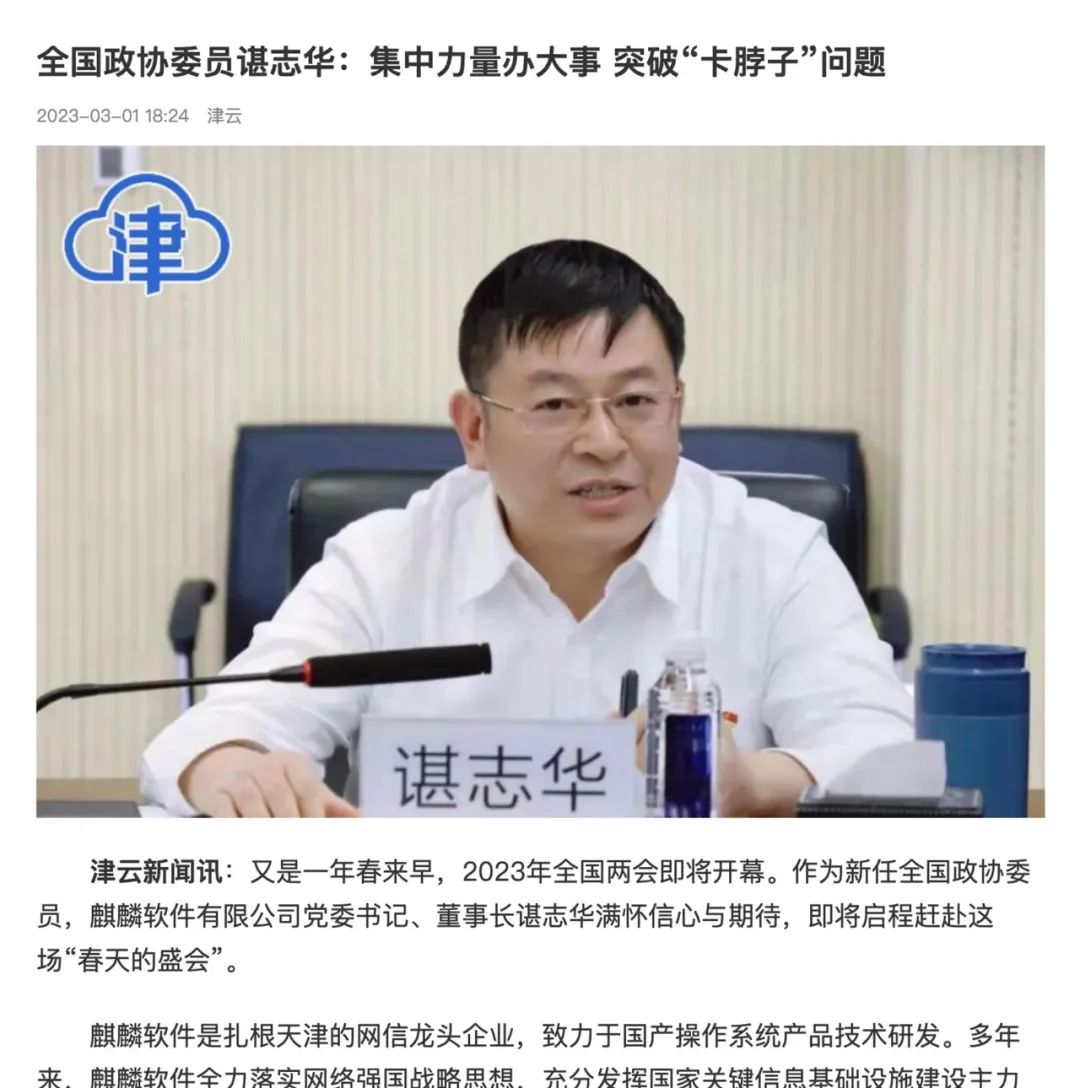 两会期间,作为全国政协委员,麒麟软件党委书记、董事长谌志华带来了“加快推动自主基础软件发展与应用”提案,为“科技自立自强”建言献策,受到媒体的热切关注。