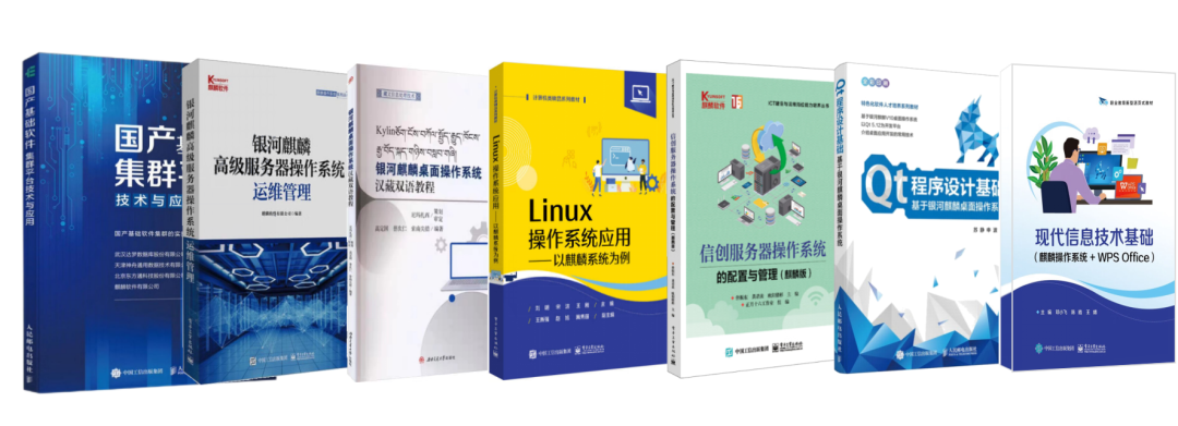 麒麟软件携手高校名师和技术专家,共同编制了信创软件人才培养系列丛书共计七本,获得了全国多个高校推荐使用,走进课堂。