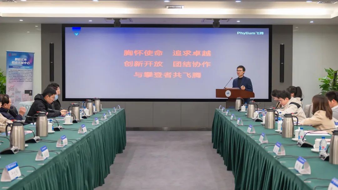另一位企业代表飞腾信息技术有限公司人才发展部总经理任巨在会上作了“新时代,芯人才”主题分享,从企业用人、产业端人才需求特色入手,探讨了新时期软件人才培养的方向和模式,并号召加强校企合作,在价值观引领下坚持创新、追求卓越,共同为整个信创产业的高质量发展持续赋能。