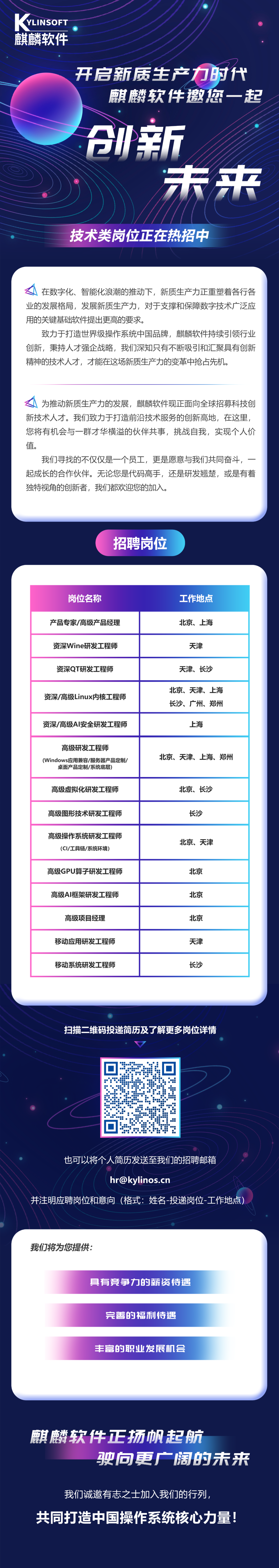 技术岗位热招中 | 新质生产力时代,麒麟软件邀您一起创新未来
