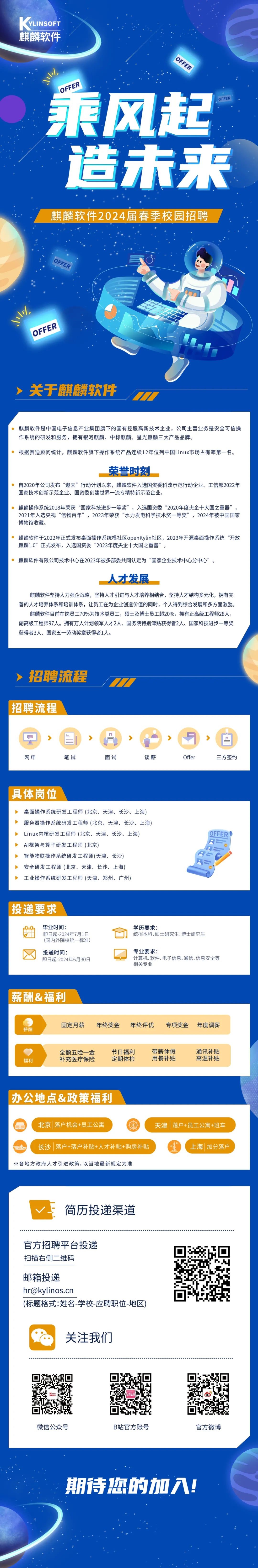 应届生速看!麒麟软件2024春季校园招聘启动啦