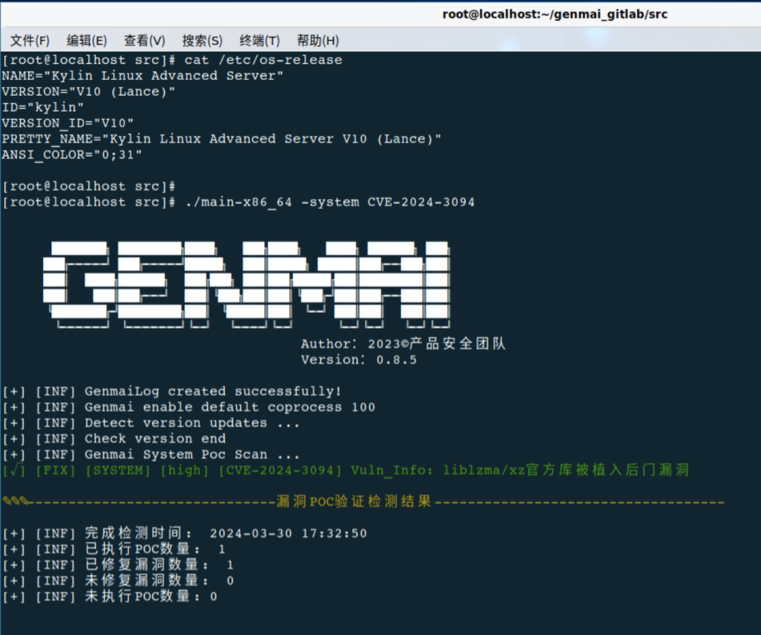 麒麟软件第一时间进行分析排查,经验证,银河麒麟桌面操作系统和银河麒麟高级服务器操作系统均不受影响。