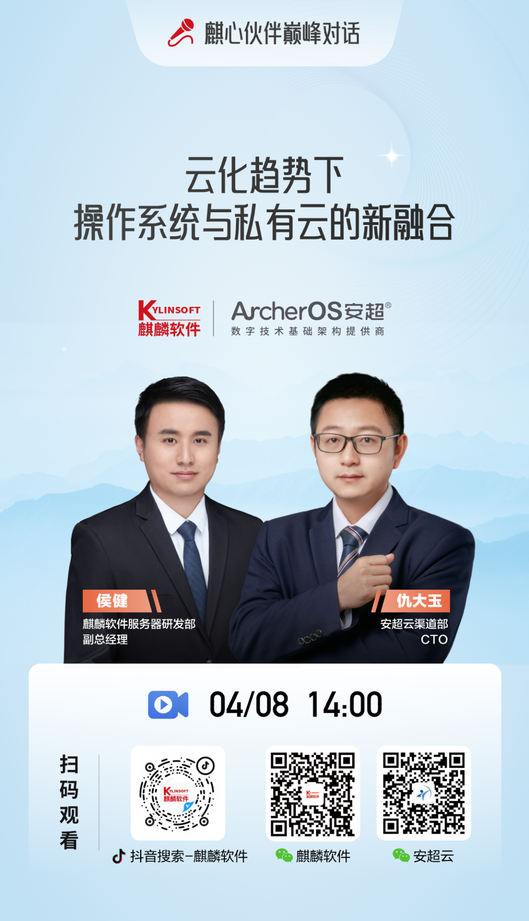 4月8日,麒麟软件的“老朋友”——国内优秀的数字架构服务提供商安超云将作客“麒心伙伴 巅峰对话”直播现场。在此之前,双方在金融、交通、教育等行业紧密合作,帮助用户灵活管理和调整基础设施资源,提高了资源利用率和业务效率。