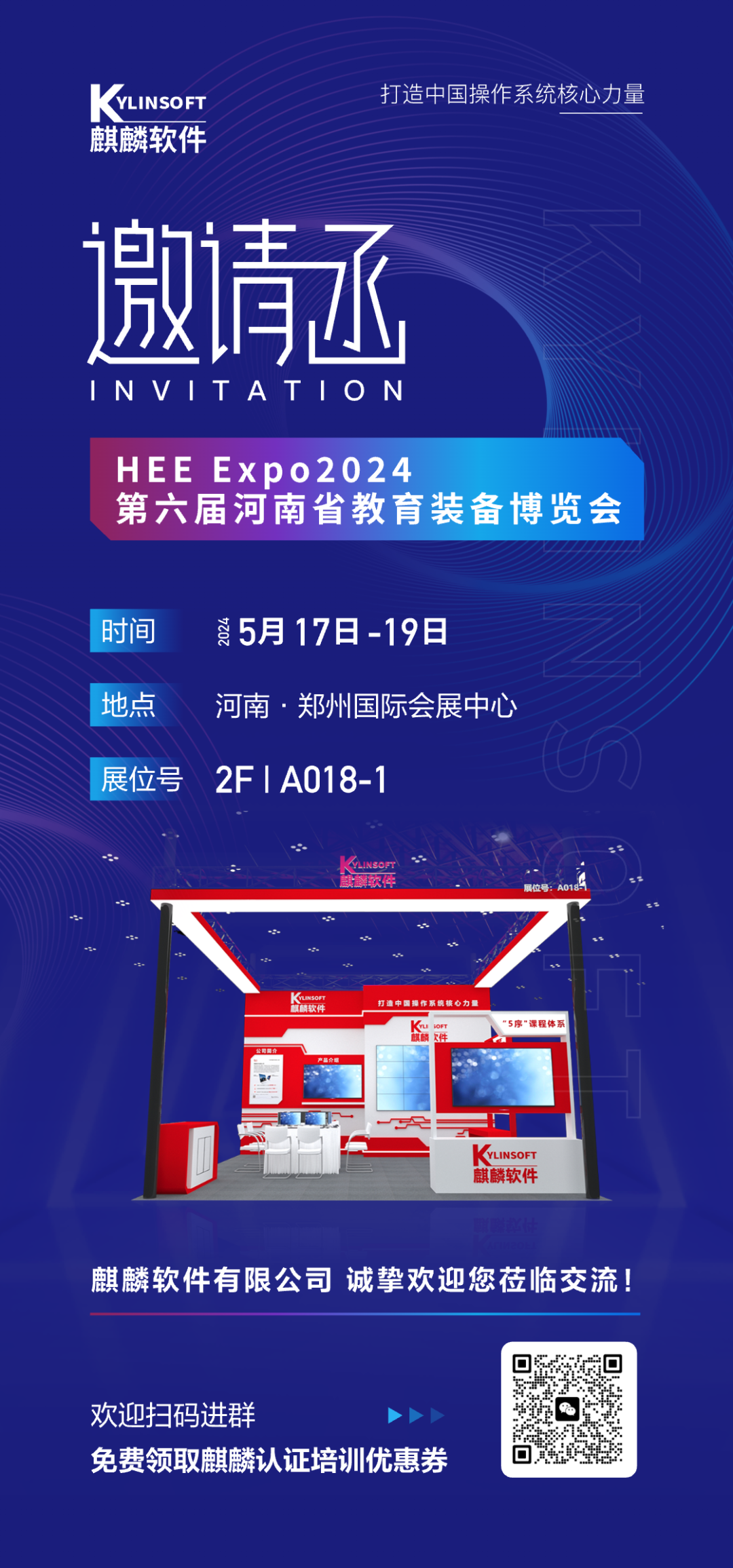 麒麟软件将在此次展会上为您呈现最新产品、教育行业解决方案及河南本地应用成果、产教融合案例,诚邀您亲临现场,共绘教育网信新蓝图!