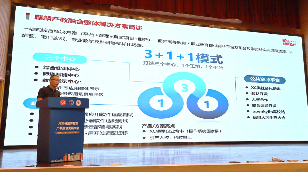 同期举行的河南省高等教育产教融合发展大会上,麒麟软件教育发展中心专家围绕“数字时代的教育生态构建”,系统展示了麒麟软件在产教融合领域的探索与阶段性成果,并现场发布了企业产教融合需求。期待与更多伙伴共建教育生态,打造行业样板,赋能整个河南省的网信产业发展。