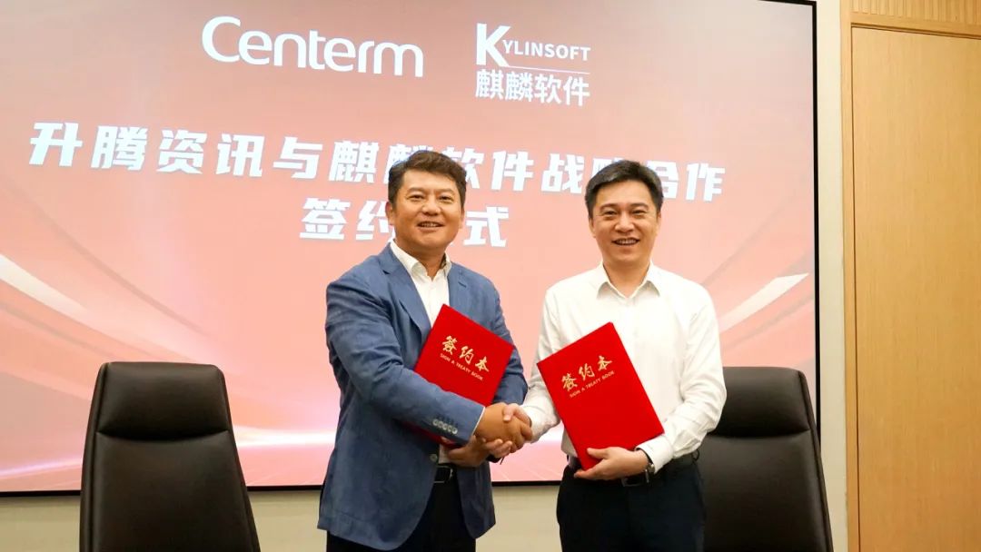 升腾资讯与麒麟软件战略签约,左一为升腾资讯总裁郑宏