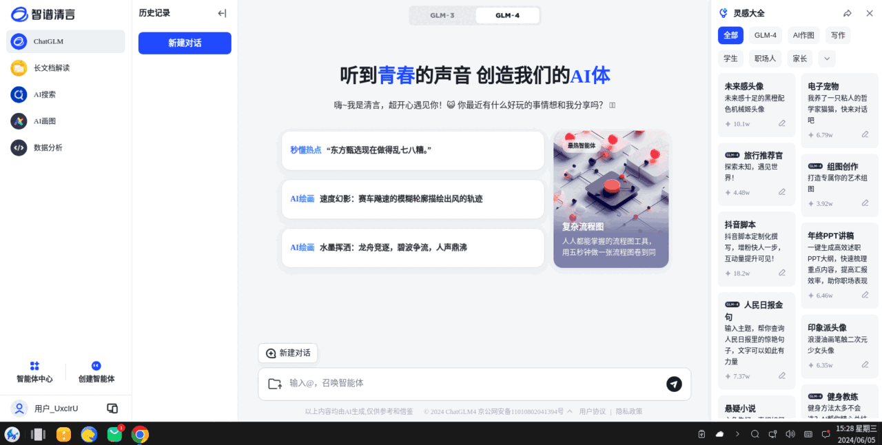 智谱清言是智谱AI打造的生成式AI助手。它基于中英双语对话模型ChatGLM研发而成,通过万亿字符的文本与代码预训练,结合有监督微调技术,能够与您对话,解答您的问题,辅助您更加方便、高效地获取信息、处理信息,提升您的学习工作效率和生活品质。