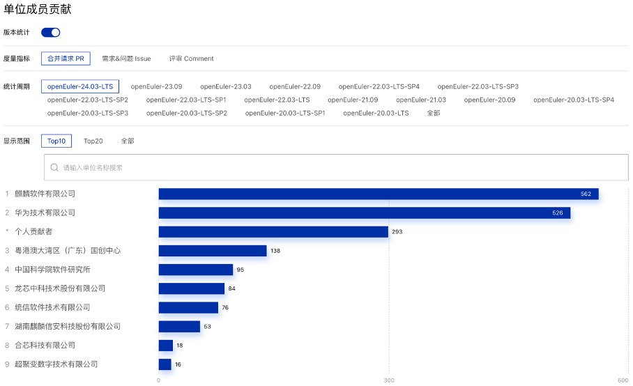 麒麟软件作为openEuler社区白金捐赠人、常务委员会单位以及开放原子开源基金会理事单位,持续投入社区建设和openEuler社区发行版开发及维护当中。目前,麒麟软件在openEuler社区累计贡献超15000PR和超4800issue,涉及技术领域包括桌面、多媒体、云原生、分布式存储、AI、大数据、高可用、生信、智能运维等,是openEuler社区第二大贡献者;并且在社区最新发布的openEuler 24.03 LTS版本当中,以560+贡献数量排名第一。