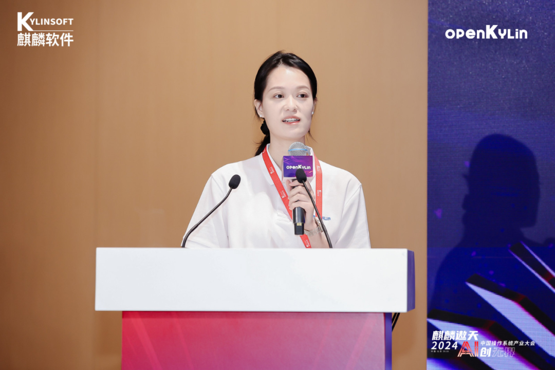 在社区众多共建伙伴的见证下,openKylin社区副秘书长刘敏宣布openKylin 2.0正式发布,并带来《向下扎根 向上生长 openKylin 2.0版本发布》演讲报告,详细阐述该版本在系统底层构建、AI创新探索、应用生态拓展等方面的成果。