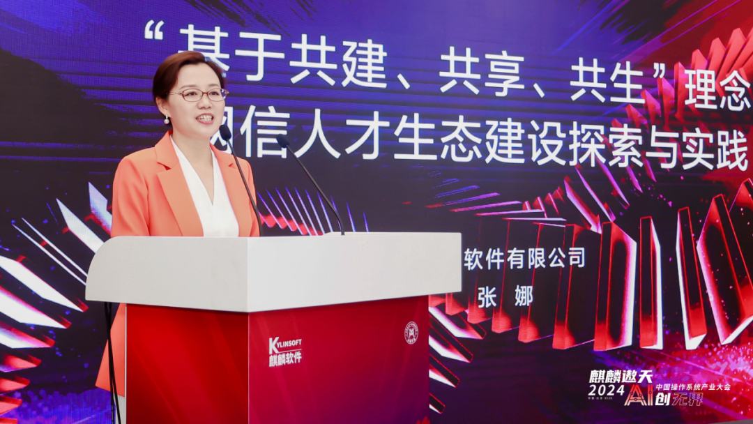 麒麟软件副总经理兼教育发展中心总经理张娜带来《“基于共建、共享、共生”理念的网信人才生态建设探索与实践》主旨报告,介绍了麒麟软件多年来的有益探索与实践,携手政产学研用各方,逐步构建形成覆盖全生命周期的网信人才自主培养体系、创新的人才自主培养模式和一批具有业界影响力的人才自主培养品牌。以“共建”人才培养沃土、“共享”人才培养成果、“共生”创新发展力量的建设理念,构建形成了产业引领,产教协同,开放融合的网信人才生态体系。