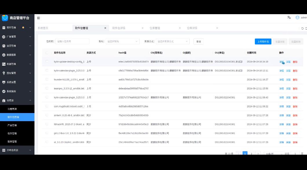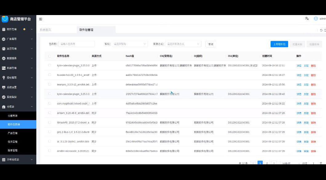 操作流程简单:上架一个软件包只需要上传或者存量关联,下架一个包只需要删除解除仓库的关联关系。