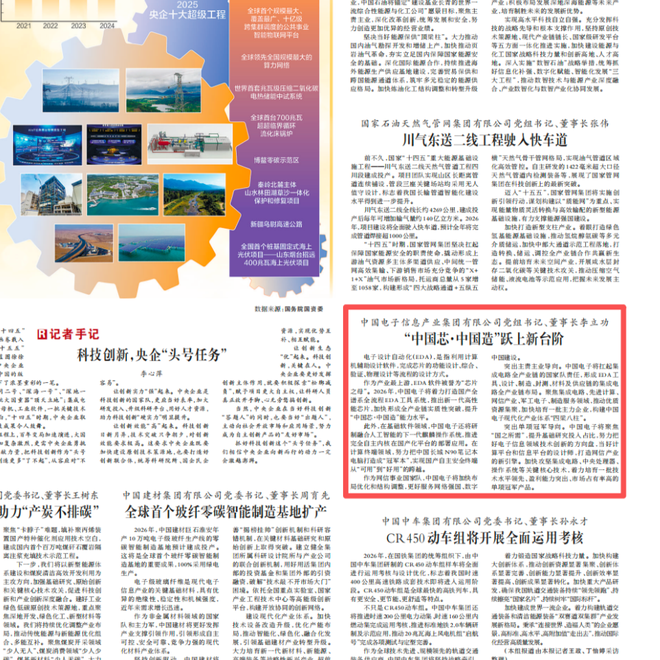 人民日报推出报道《今年,央企有哪些大国重器值得期待》,刊发中国电子党组书记、董事长李立功专访——《“中国芯·中国造”跃上新台阶》。