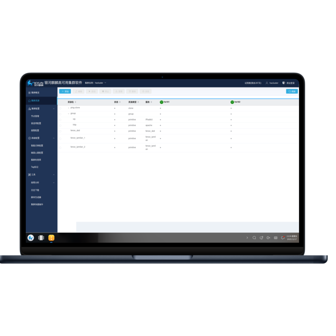银河麒麟高可用集群软件V11以容错抗灾、智能稳定为立足点,配备自研高可用集群管理端WEB界面,实现便捷交互,搭建覆盖多集群资源与节点的监控管理、智能迁移、故障分析及报警配置等操作的全栈技术体系,同时提供双机高可用、多机高可用等多种灵活的集群援备模式,全面覆盖业务网络故障、心跳网络故障、应用故障、存储故障及节点故障等场景,实现产品故障检测时间小于10秒,故障切换及恢复秒级完成,为银河麒麟高级服务器操作系统提供智能高可用集群解决方案。