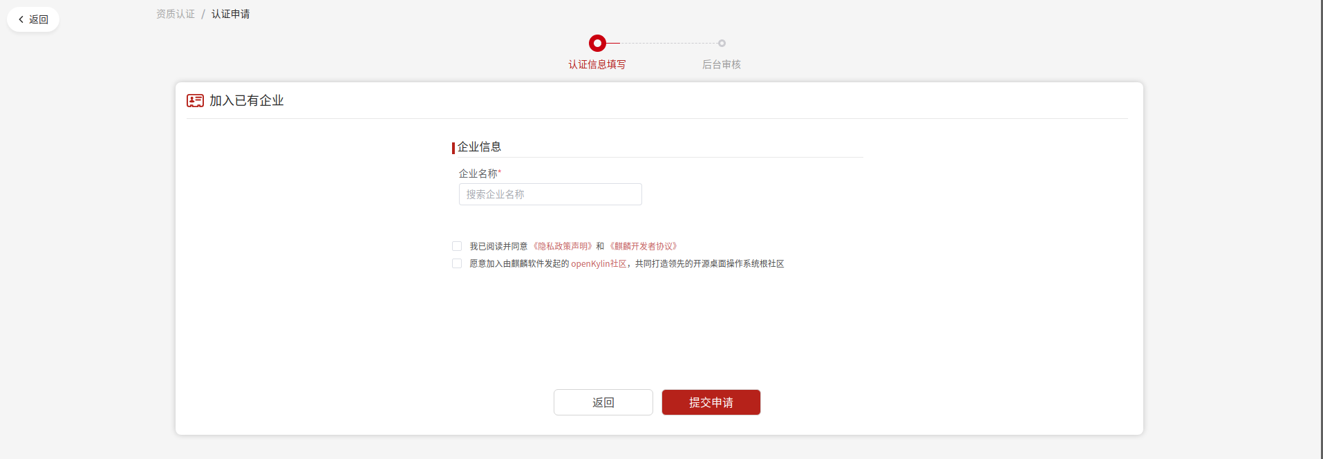 如果您所属企业已通过资质认证,您可申请加入企业,企业管理员审核通过后,即可提交适配认证申请。