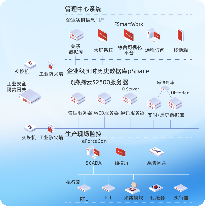 基于飞腾处理器、银河麒麟操作系统、综合可视化平台FSmartWorx和企业级实时历史数据库pSpace的联合解决方案,包含数据采集与监控子系统、数据传输子系统、生产管理子系统等多款工业软件,能够协助用户完成工业管控的工作,促进生产方式转变,提升生产……