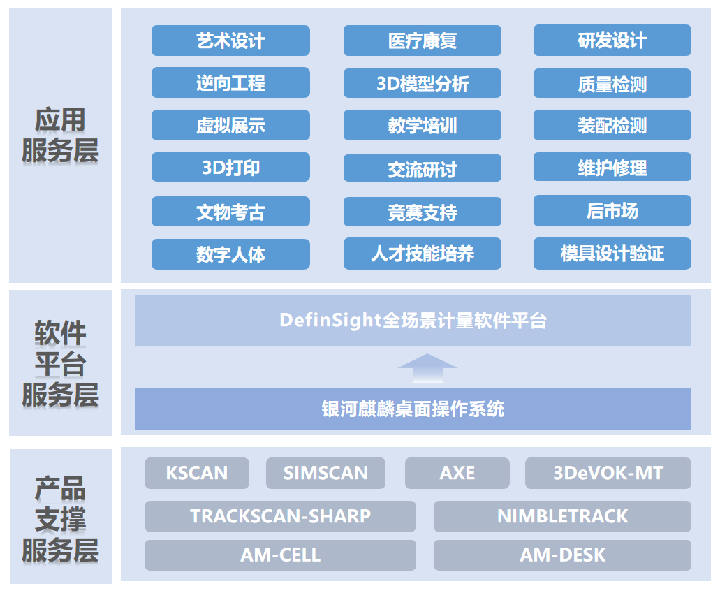 本方案以银河麒麟桌面操作系统为核心,集成国产自研DefinSight全场景计量软件平台及国产扫描仪,构建完整的国产化技术体系,实现了从硬件到软件的全链路自主创新。该方案已广泛应用于多个关键领域:在工业制造方向,覆盖航空航天、汽车制造、工程机械、交通运输、3C电子等行业,支持研发设计、质量检测、装配检测、维护维修及后市场服务等环节;在数字化创新方向,服务于教学科研、艺术文博、医疗健康、公安司法、虚拟现实等领域,支撑人才技能培养、教学培训、交流研讨、3D模型分析、医疗康复、数字人体、文物考古、艺术设计、3D打印、虚拟展示及逆向工程等多样化应用场景。