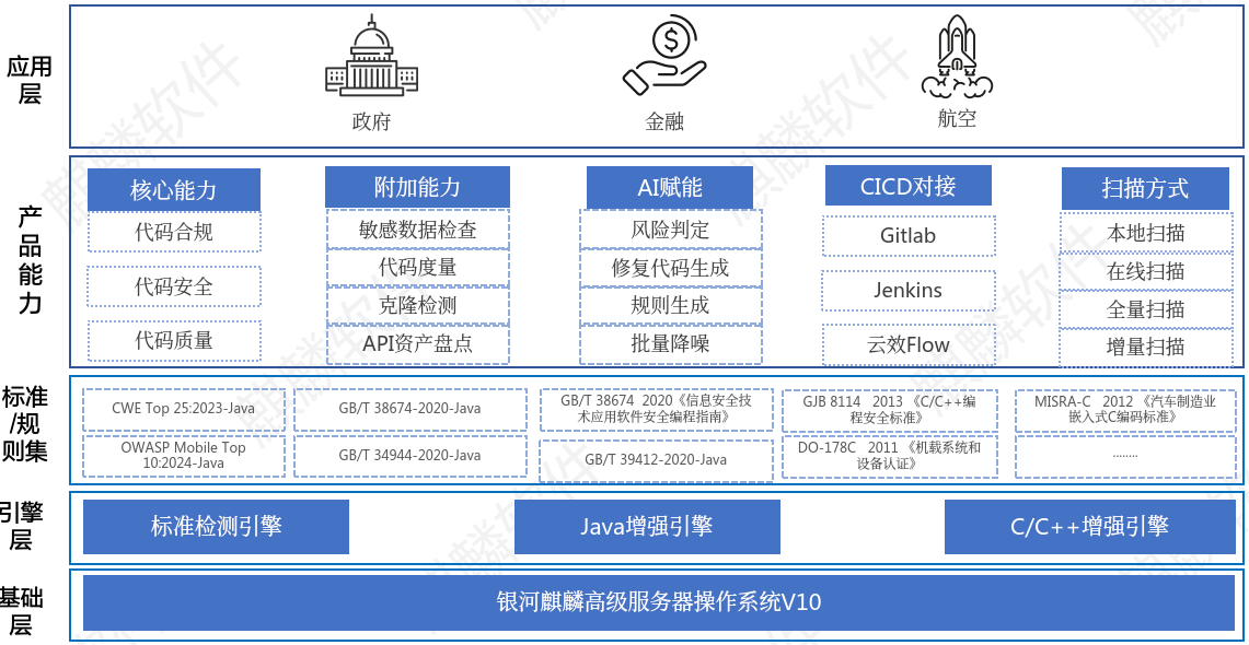 本方案主要应用于对信息安全、自主可信有高要求的关键行业的软件研发与系统运维场景。例如,在金融行业的核心交易、信贷管理、风险控制系统中,通过部署已深度适配银河麒麟高级服务器操作系统V10的静态应用安全测试(SAST)工具,能在国产化平台上从源代码层面有效管控软件安全缺陷与供应链风险。